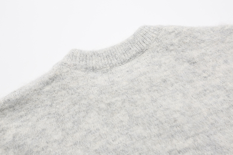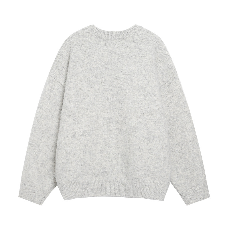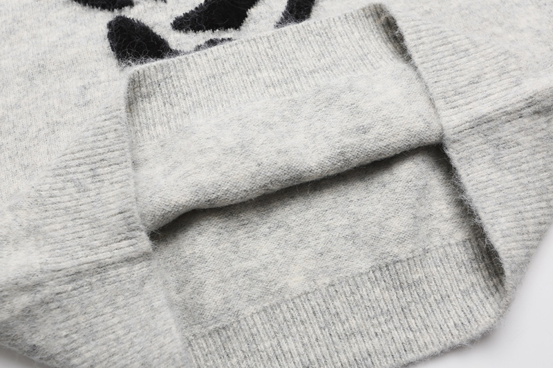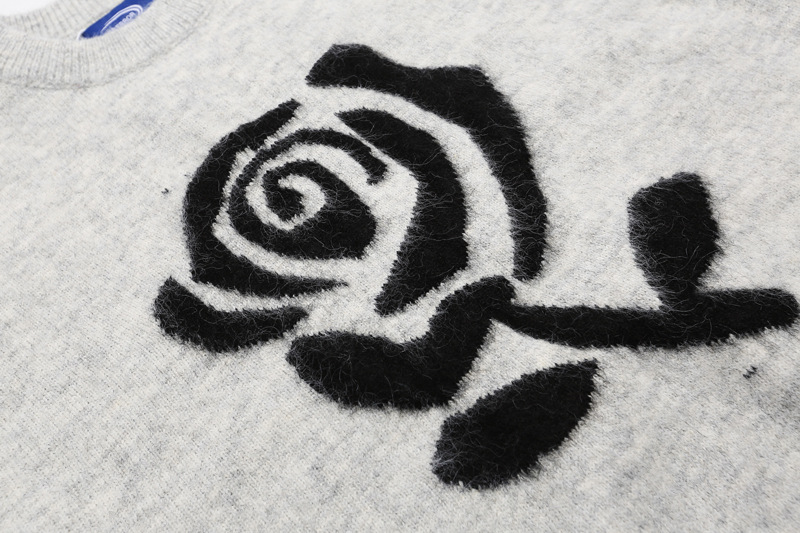 Big Size Elegant Rose Jacquard Knitwear for Men and Women, Loose Lazy Style Soft Gray Sweater