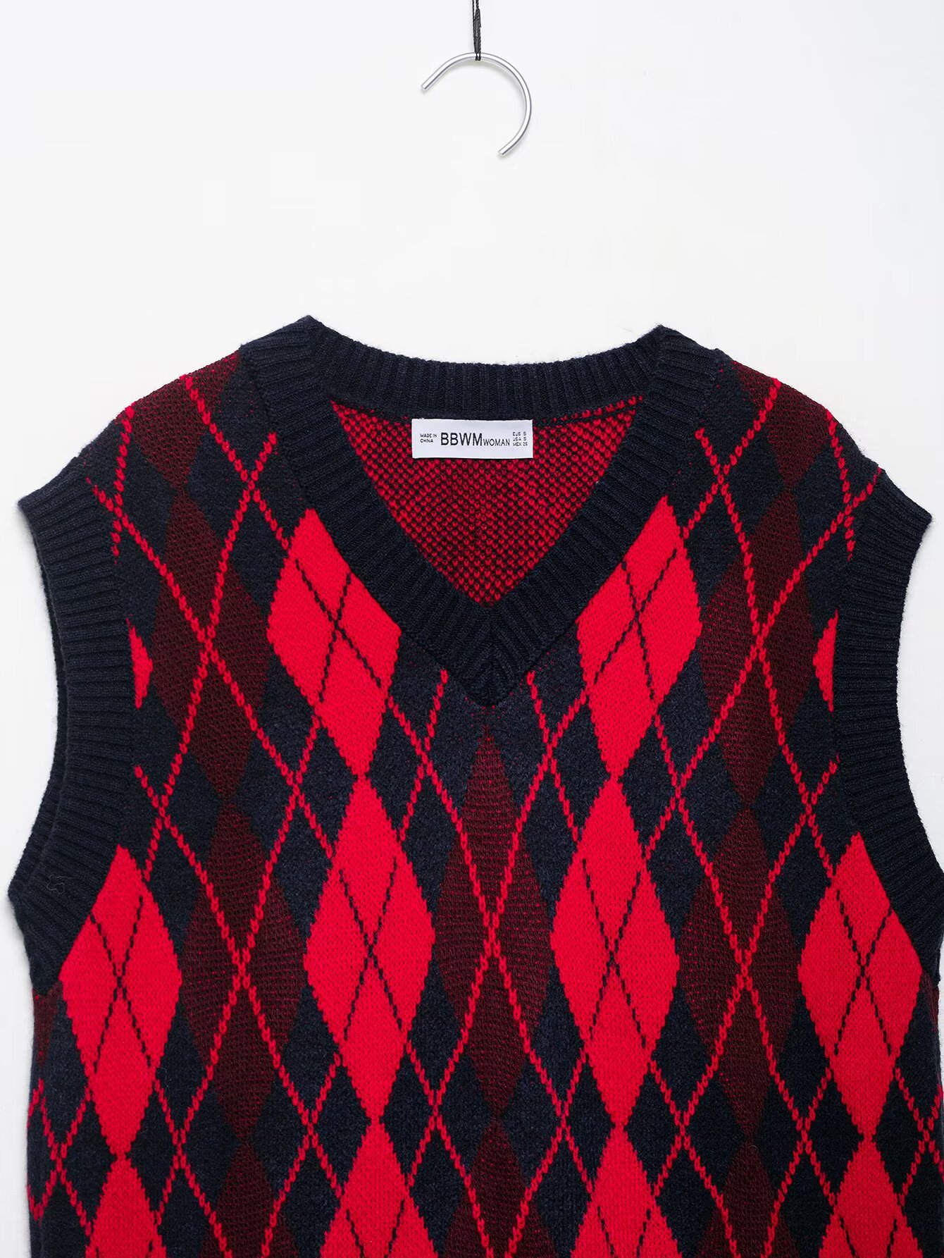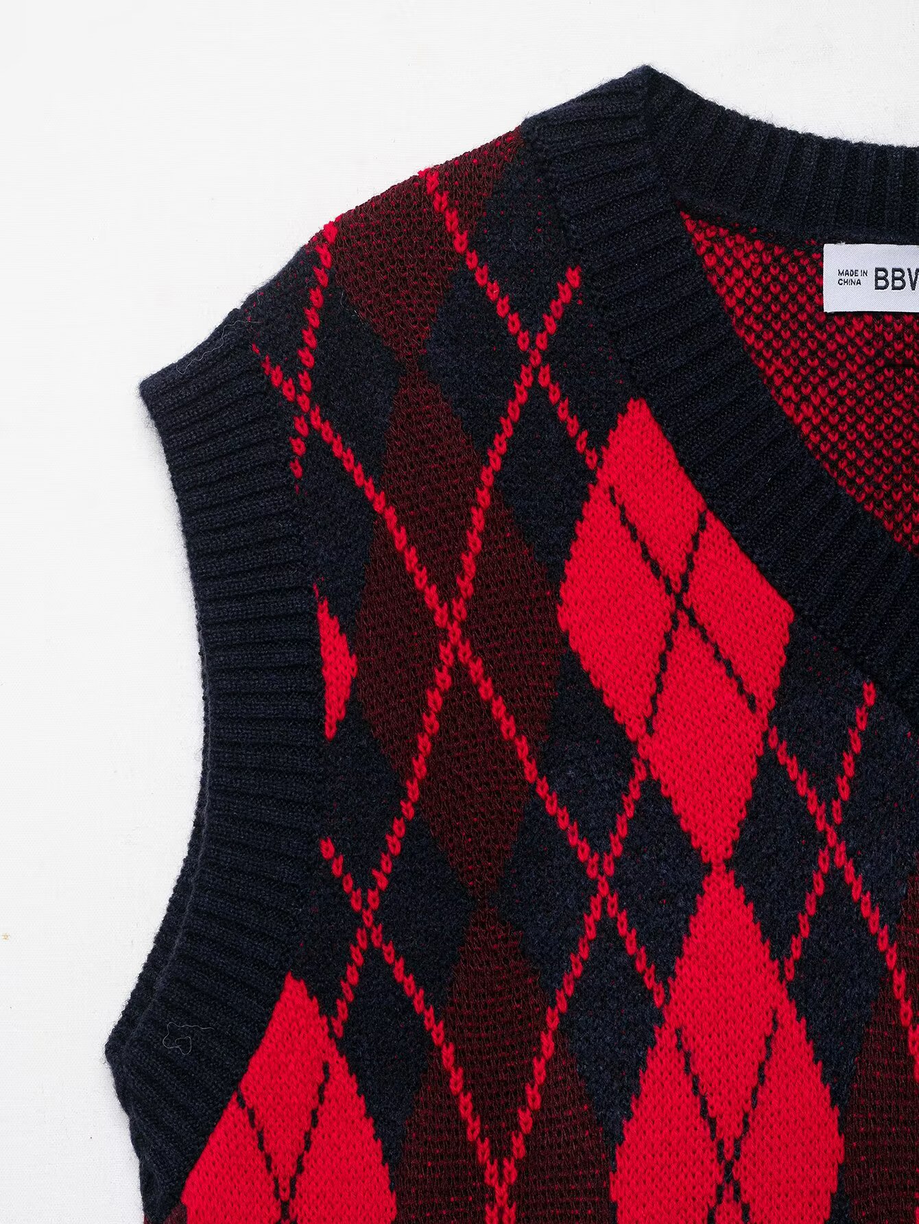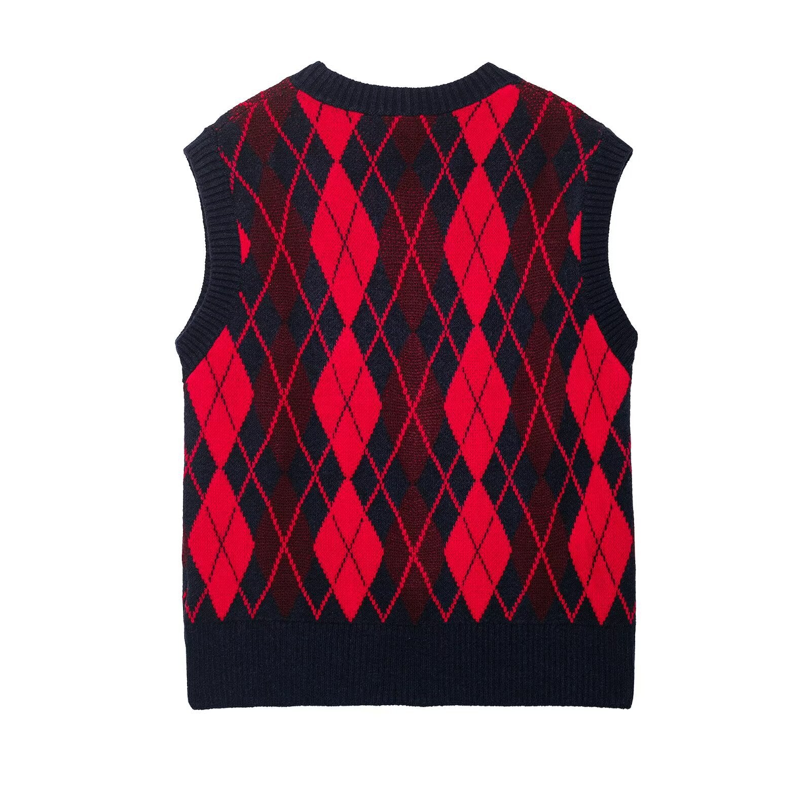 Casual versatile V-neck sleeveless diamond patterned vest top for women