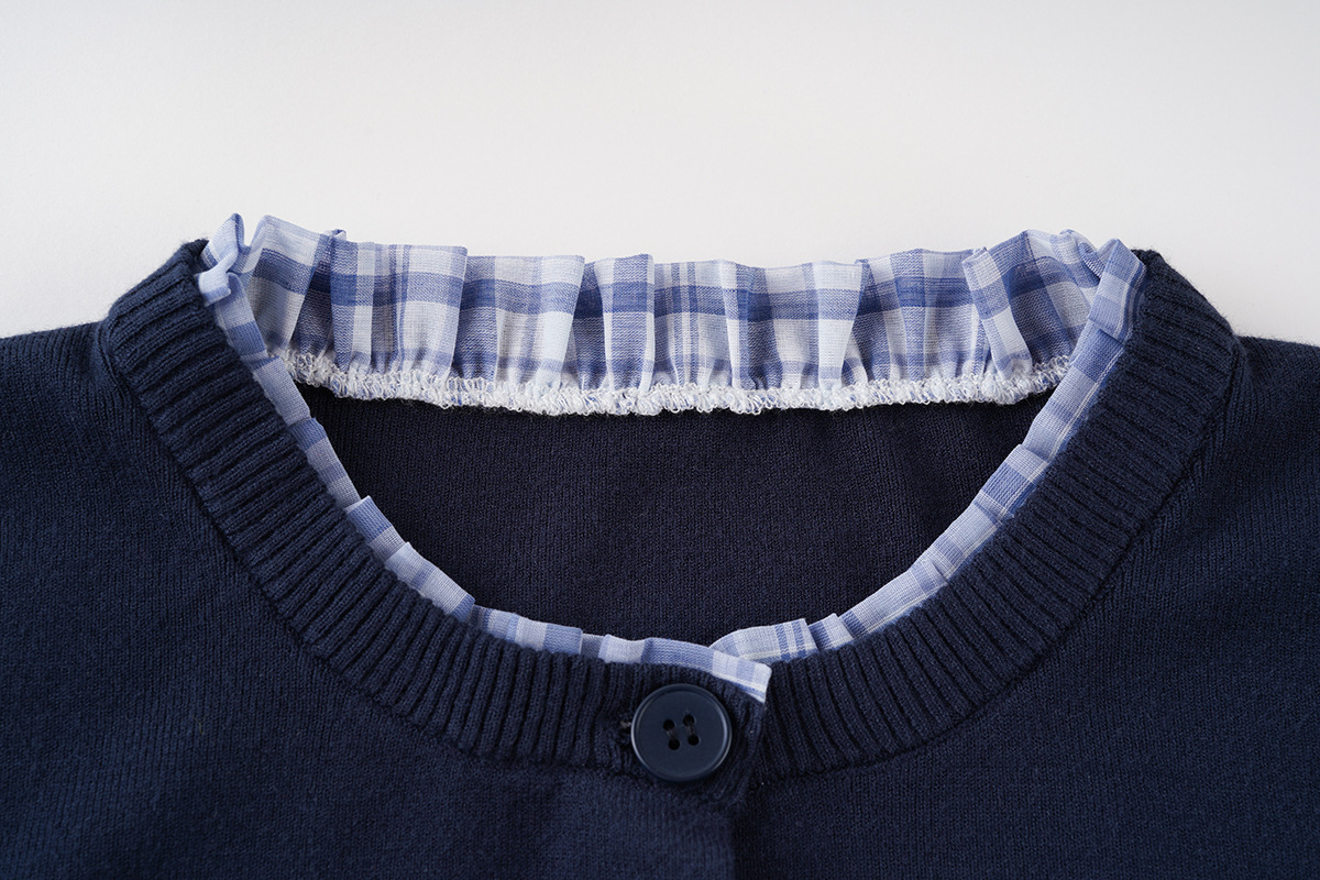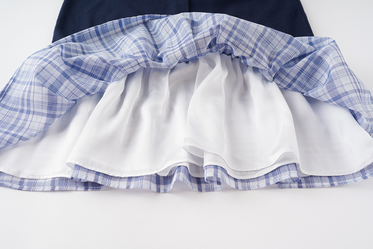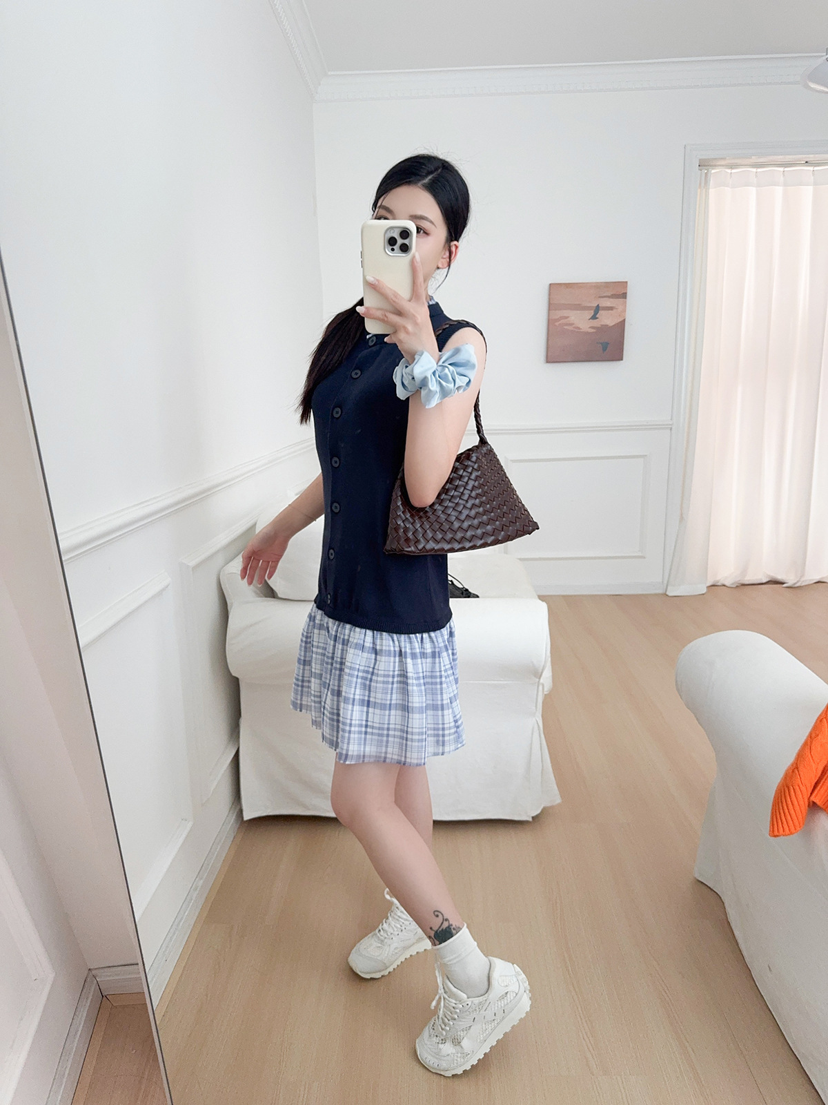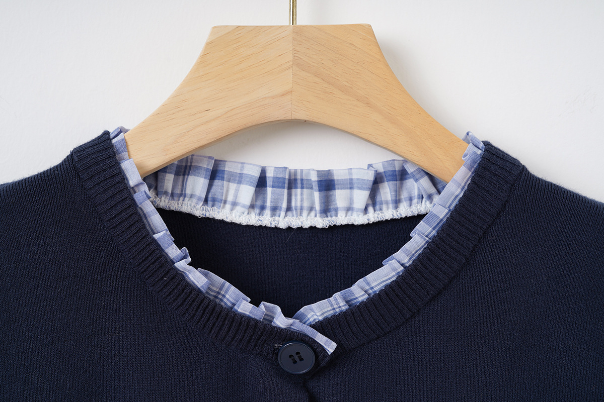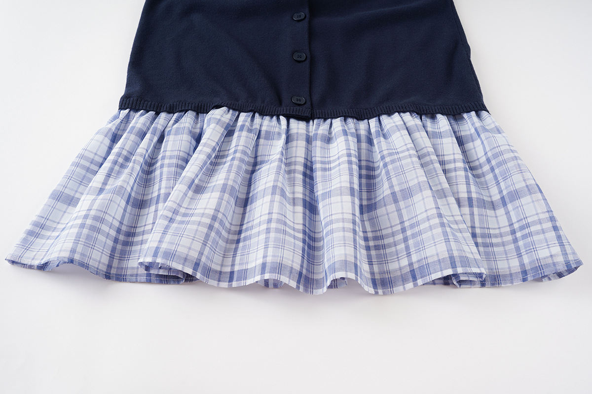 Color-blocked Knit Dress for Women, Plaid Hem, Ruffle Collar Sleeveless Midi Length Dress