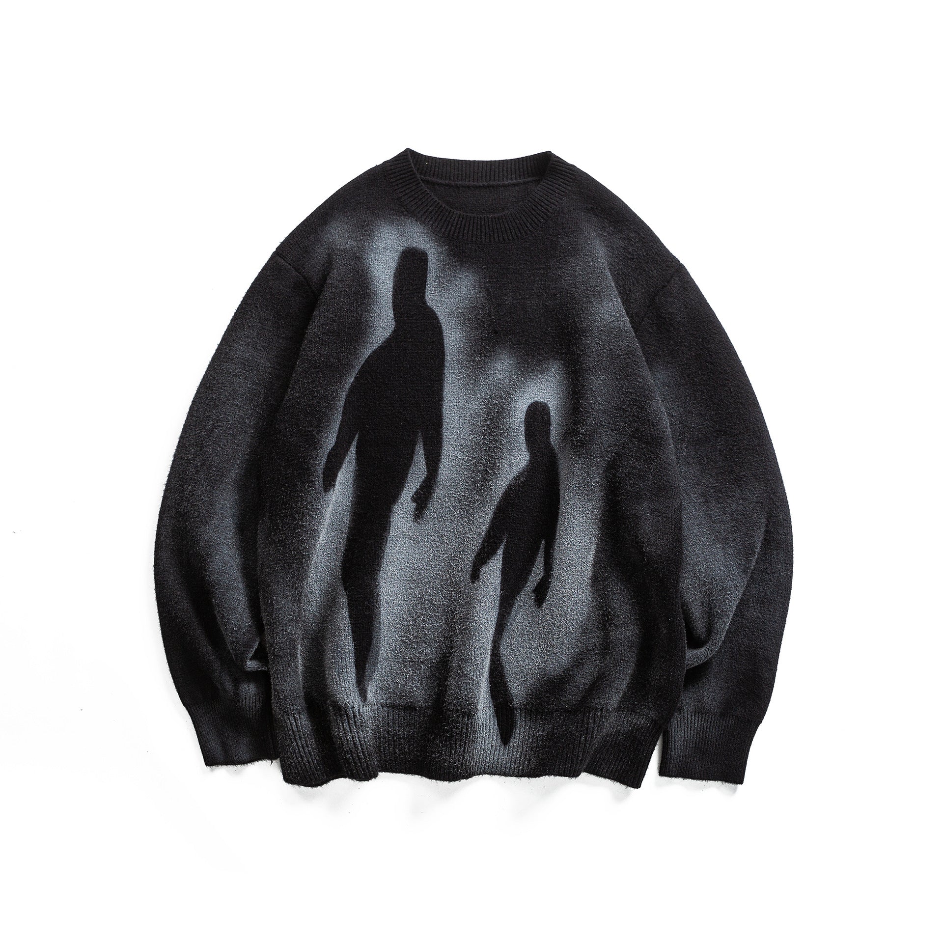 Dye-Printed Human Figure Design Casual Loose Knitwear