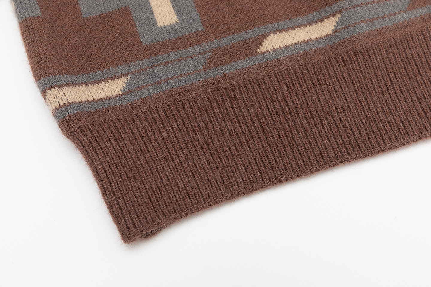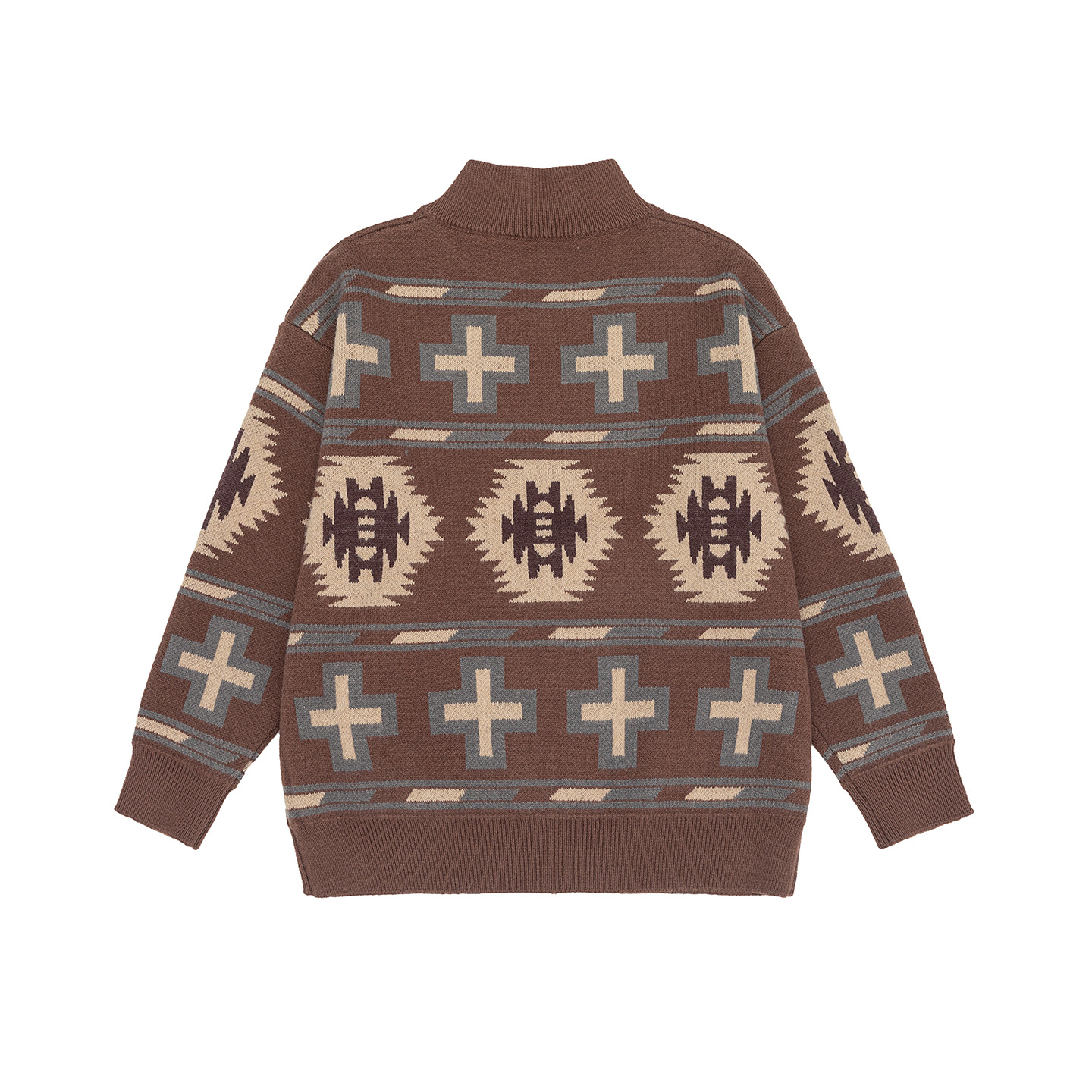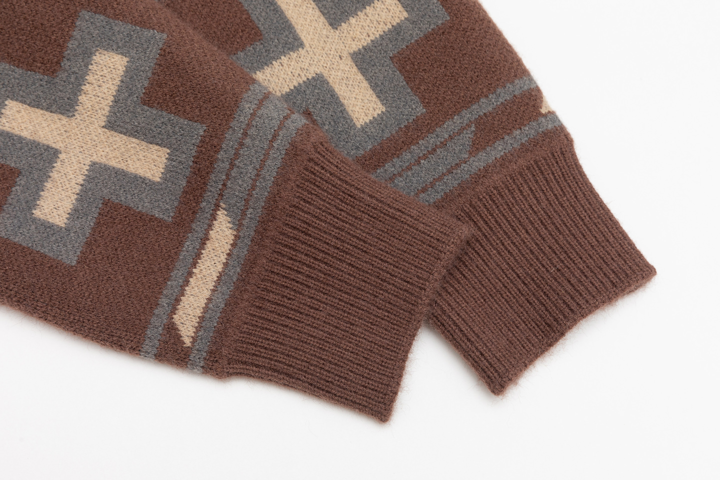 Fair Isle Knit Cardigan with Color-block Jacquard Pattern Loose Fit Zipper Closure Long Sleeve
