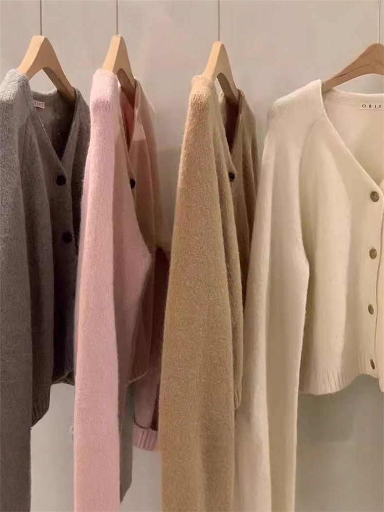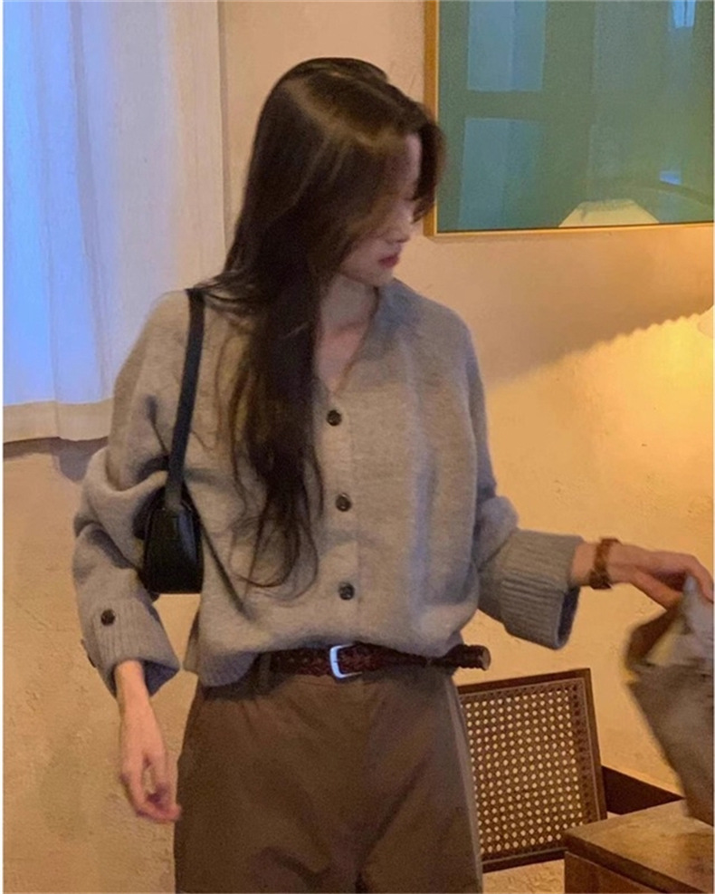 French V-neck Knit Sweater for Women Fashionable and Elegant Cardigan Long Sleeve Outerwear Top