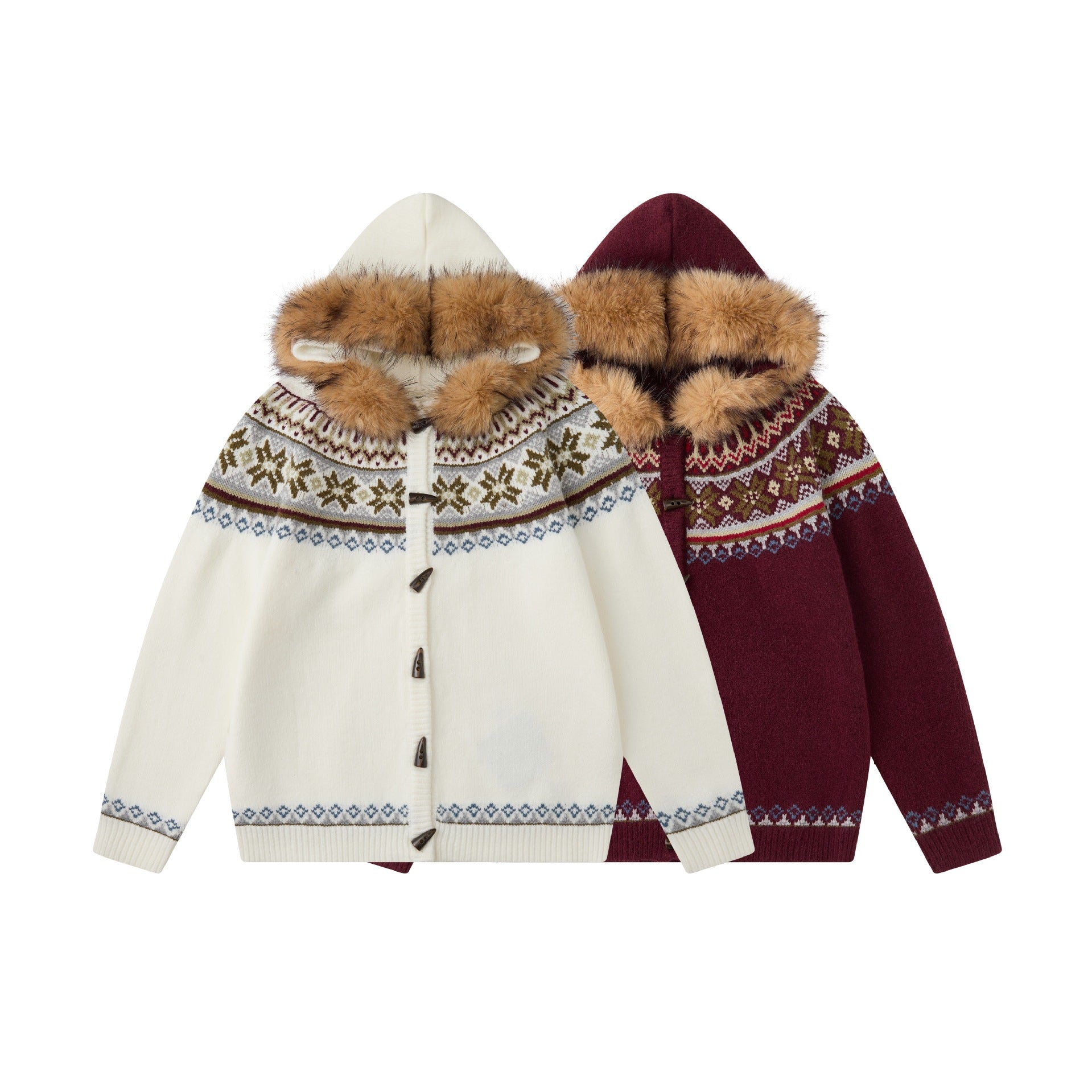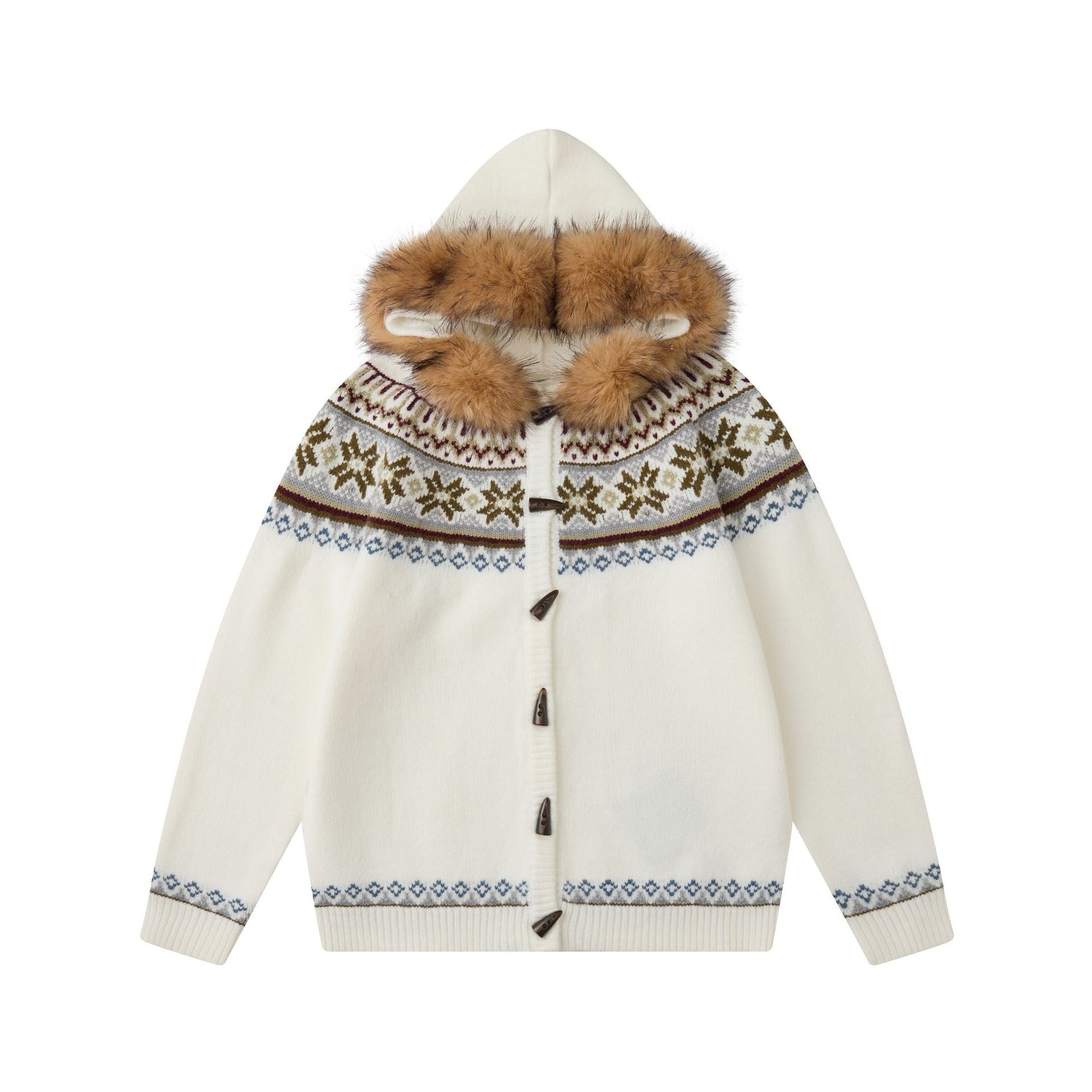 Long Sleeve Hooded Thick Knit Cardigan Sweater for Men and Women
