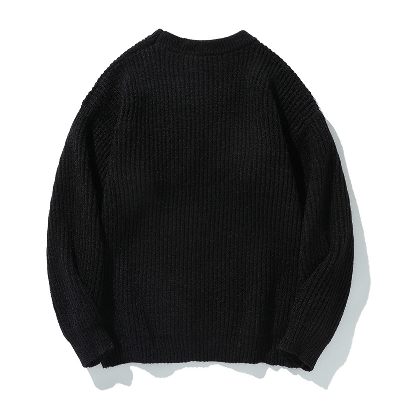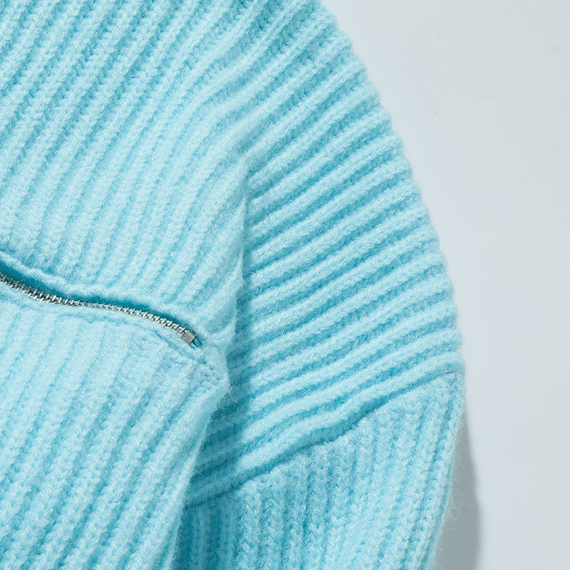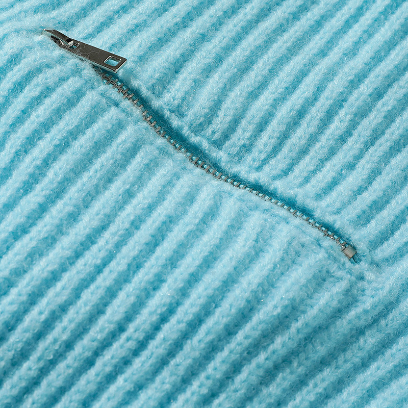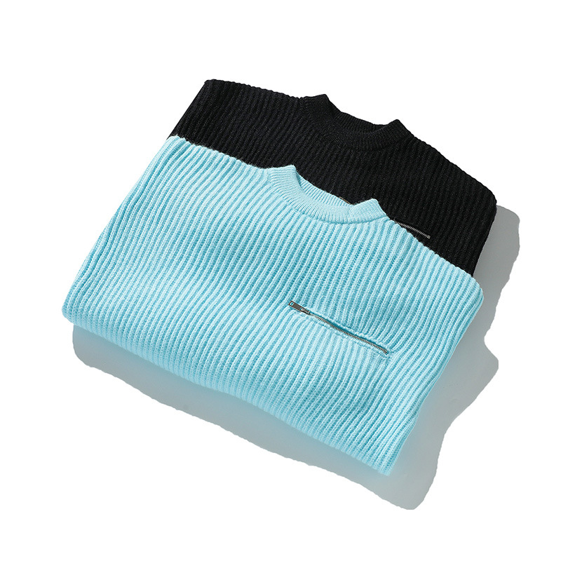 Long Sleeve Zipper Pocket Crew Neck Knit Sweater
