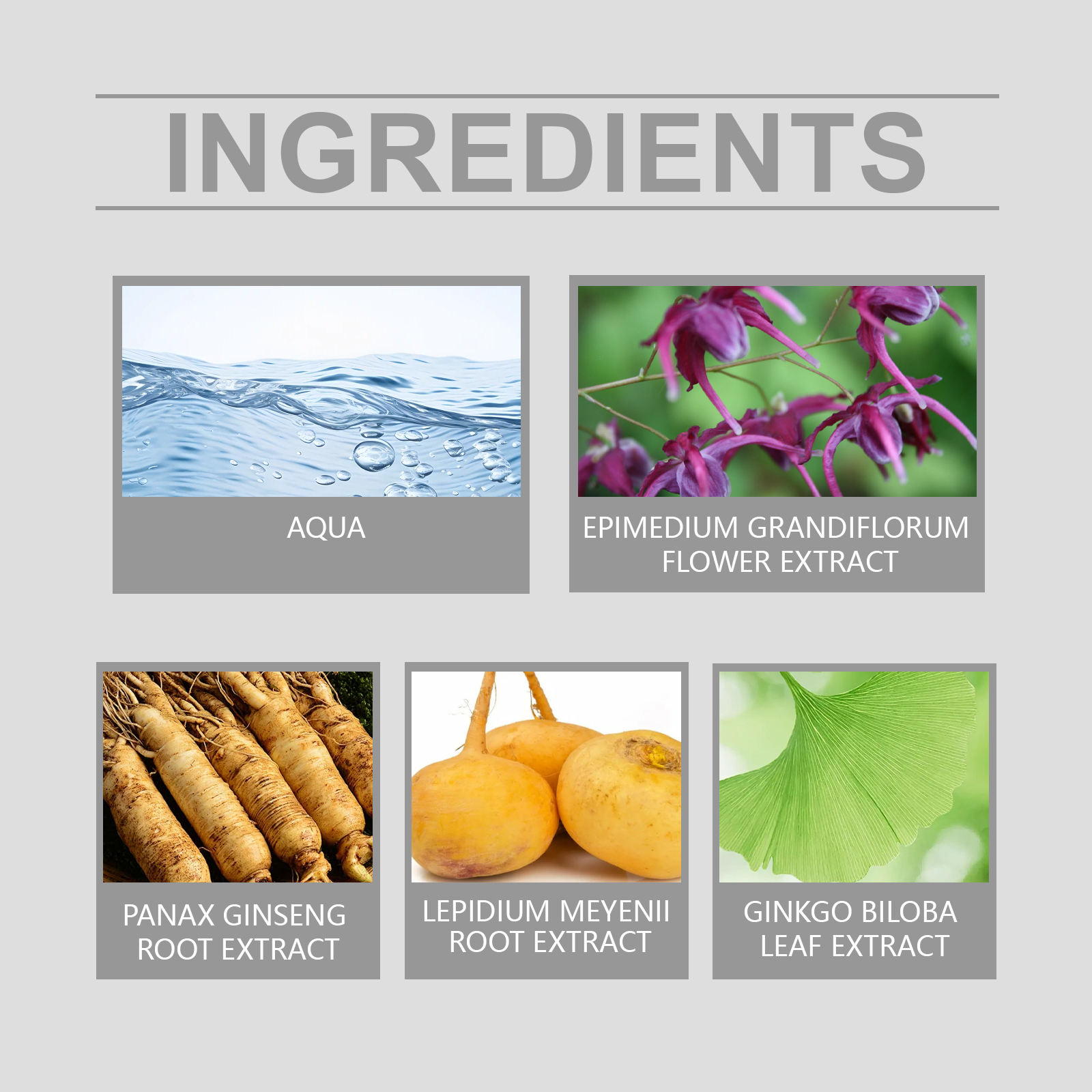 Our Men's oil contains Epimedium flower extract, ginseng root extract and Longo root extract. It can increase physical vitality and improve confidence and performance. Provide comprehensive support to enhance physical resilience. The way to use it is simple: 1. Clean your private parts and keep them dry; 2. Apply appropriate amount of the product evenly on the private parts and surrounding skin; 3. Gently massage until completely absorbed. Designed for men to help them increase vitality and confidence; Daily use, simple and convenient, the effect is remarkable. Provides long-term protection and keeps the body active.