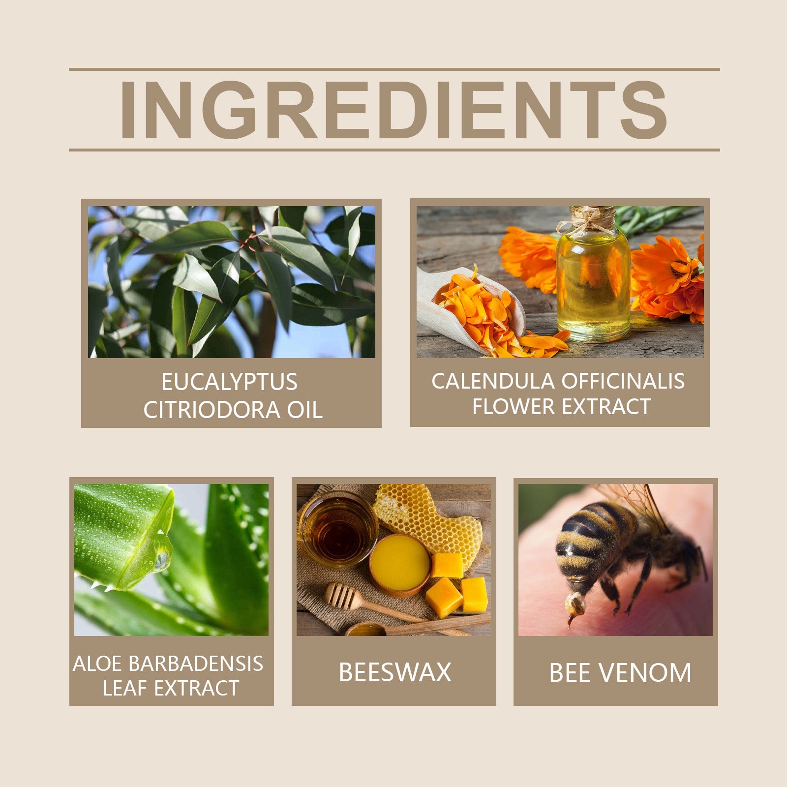Our bee venom cream contains beeswax, bee venom and aloe vera extract. It can quickly relieve skin discomfort. Deep nutrition improves skin's ability to repair itself. Its use is simple: 1. Clean and dry the skin; 2. Apply proper amount of the product evenly to the whole body; 3. Gently massage until absorbed. The ingredients are mild and not irritating, so you can use them with confidence.