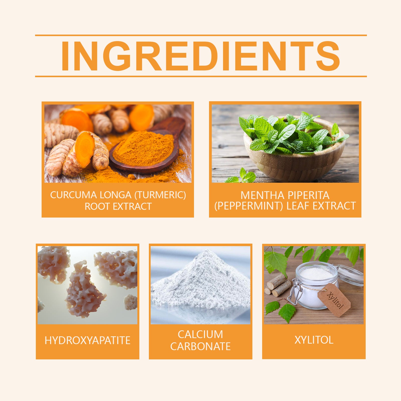 Our White turmeric tooth cleaning powder contains turmeric extract, peppermint extract, hydroxyapatite. It uses a gentle formula that cleans teeth without harming gums and is suitable for daily use. After use, your breath will be fresh and stay fresh for a long time, resulting in a pleasant tooth cleaning experience. The way to use it is simple: gently dip the head of a wet toothbrush into the right amount of tooth powder. Use a toothbrush dampened with tooth powder to clean the outer, inner and occlusal surfaces of your teeth. Rinse your mouth with water. And can effectively remove the stains on the surface of the teeth, so that the teeth appear natural white and shiny.
