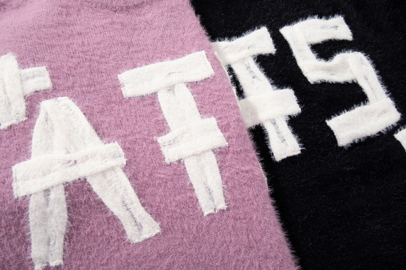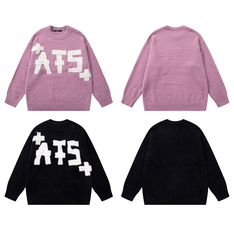 Original Trendy Brand Knit Sweater Men's Applique Embroidery Round Neck Casual Inner Wear Couple Basic Knitwear