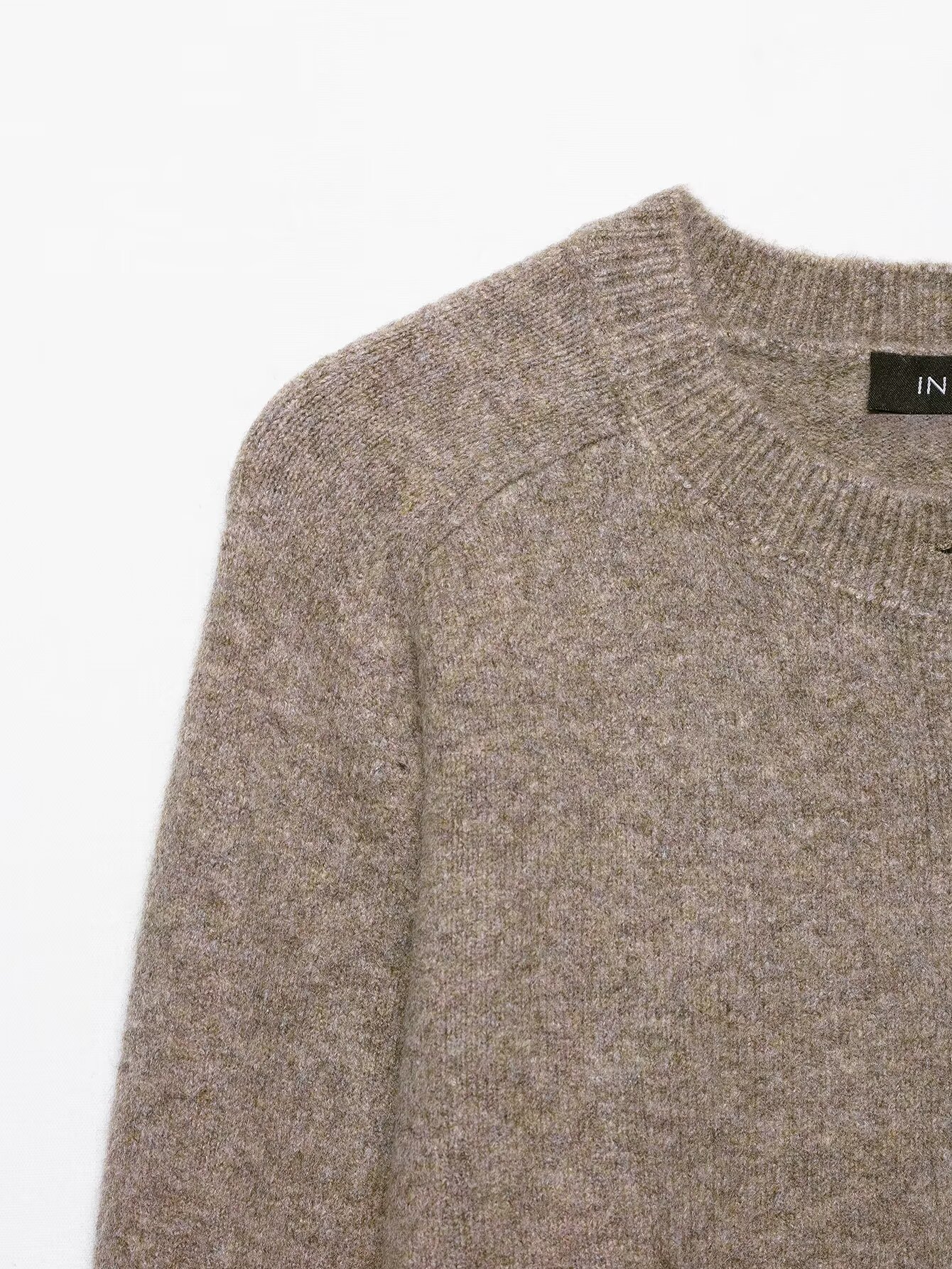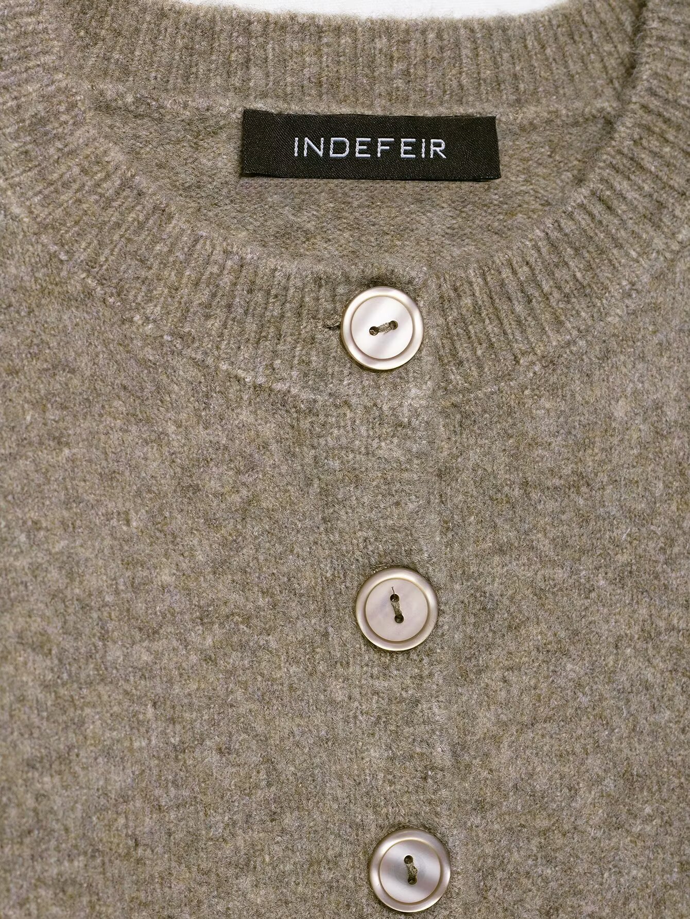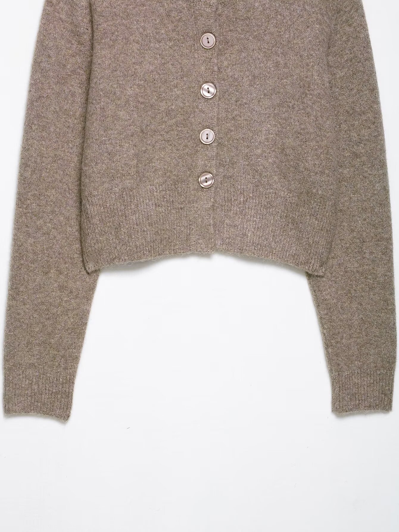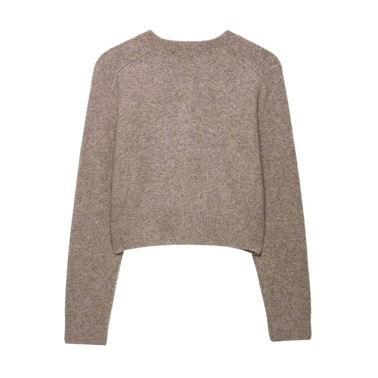 Round neck long sleeved single breasted solid color knitted sweater for women