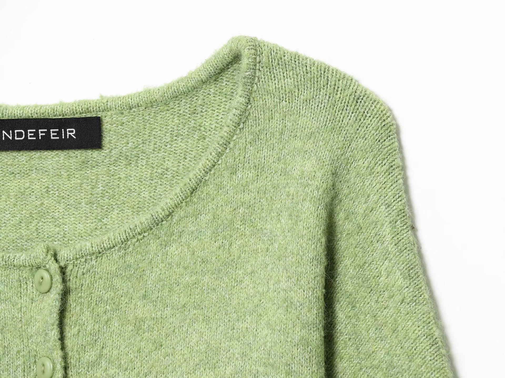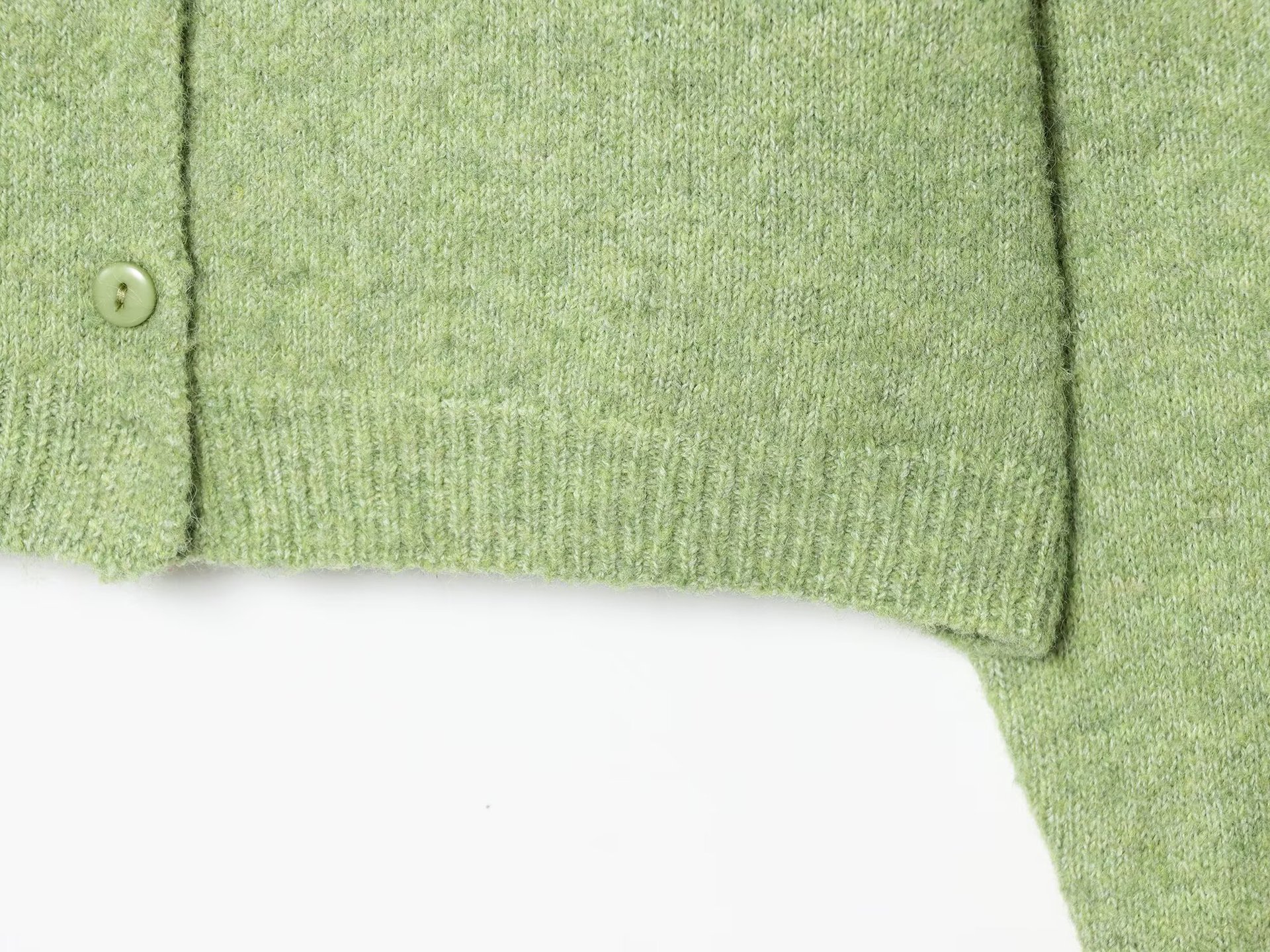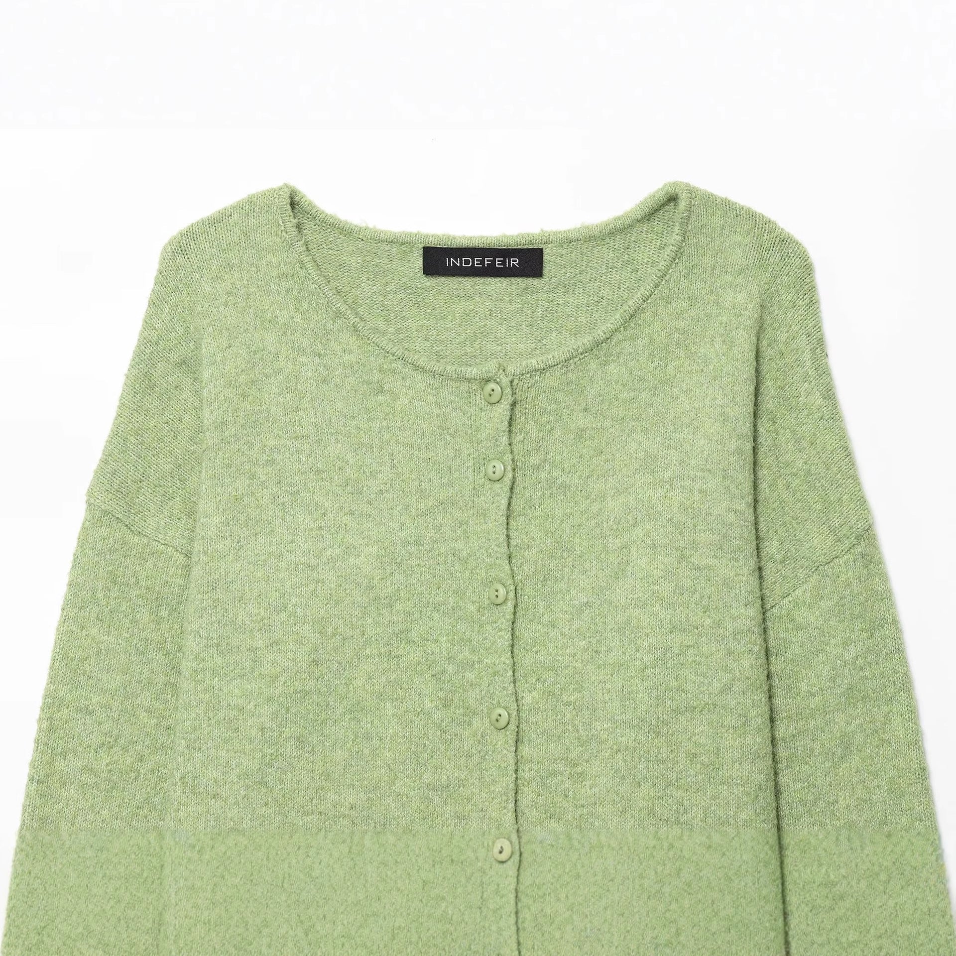 Round neck long sleeved single breasted solid color knitted sweater for women