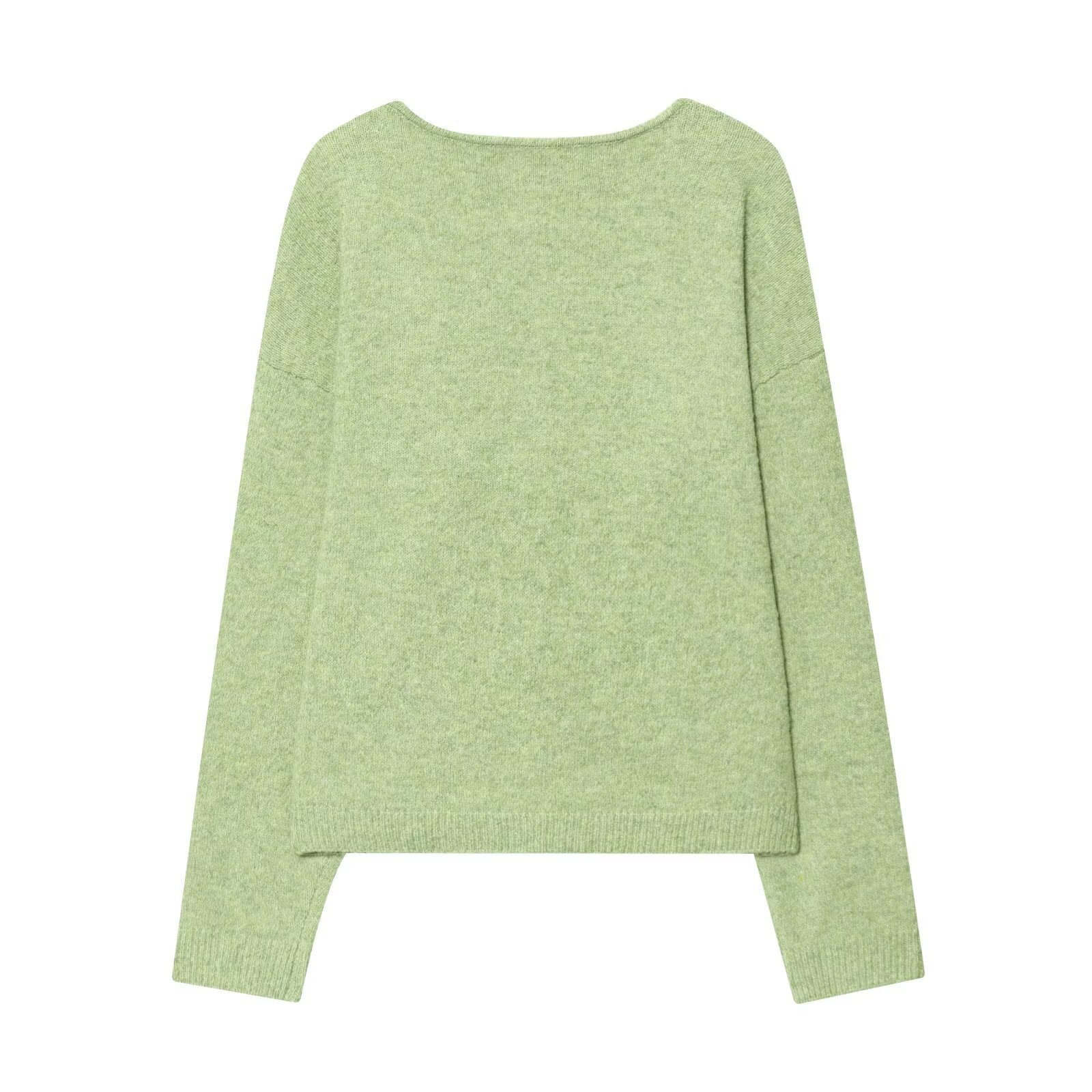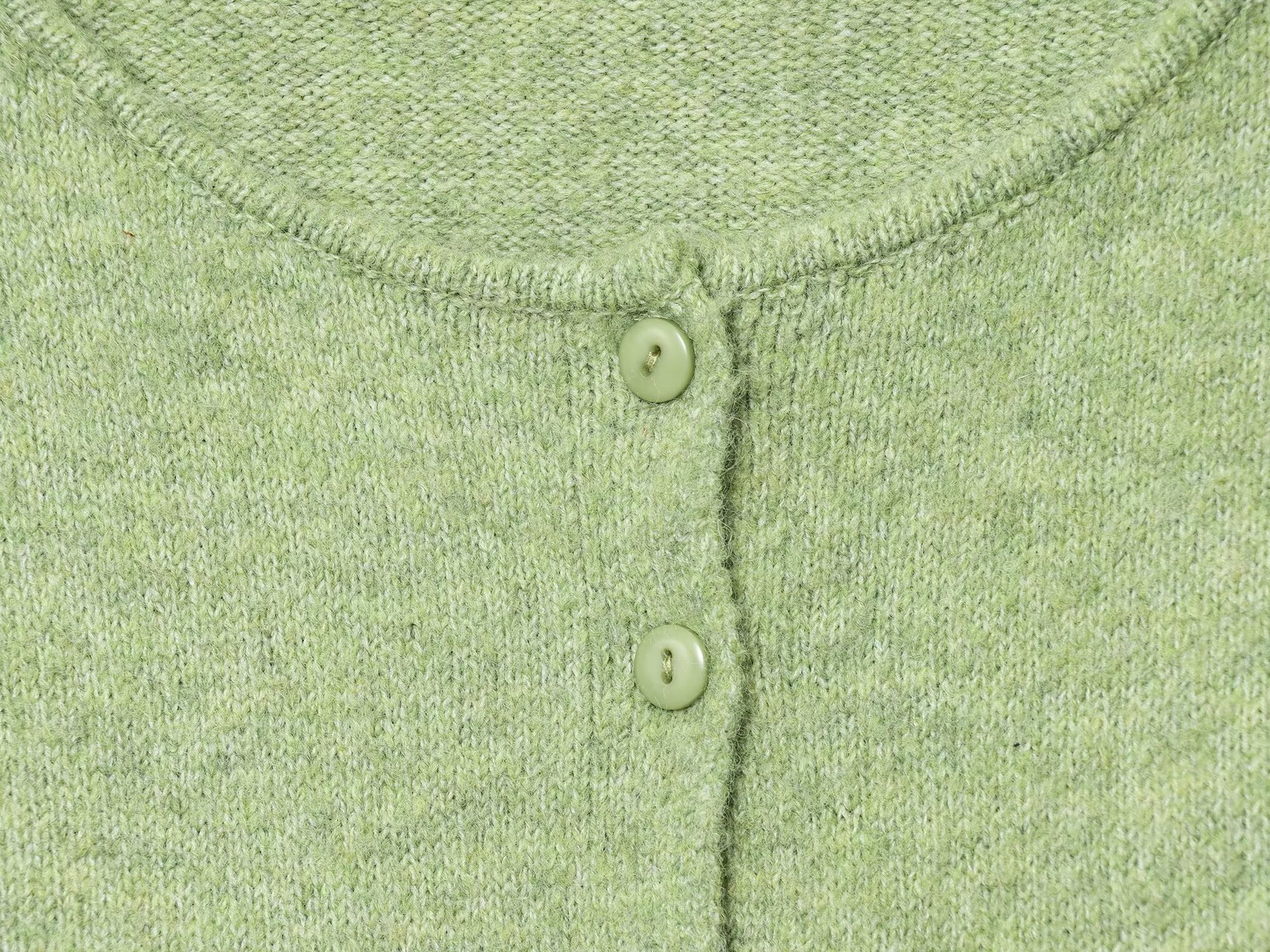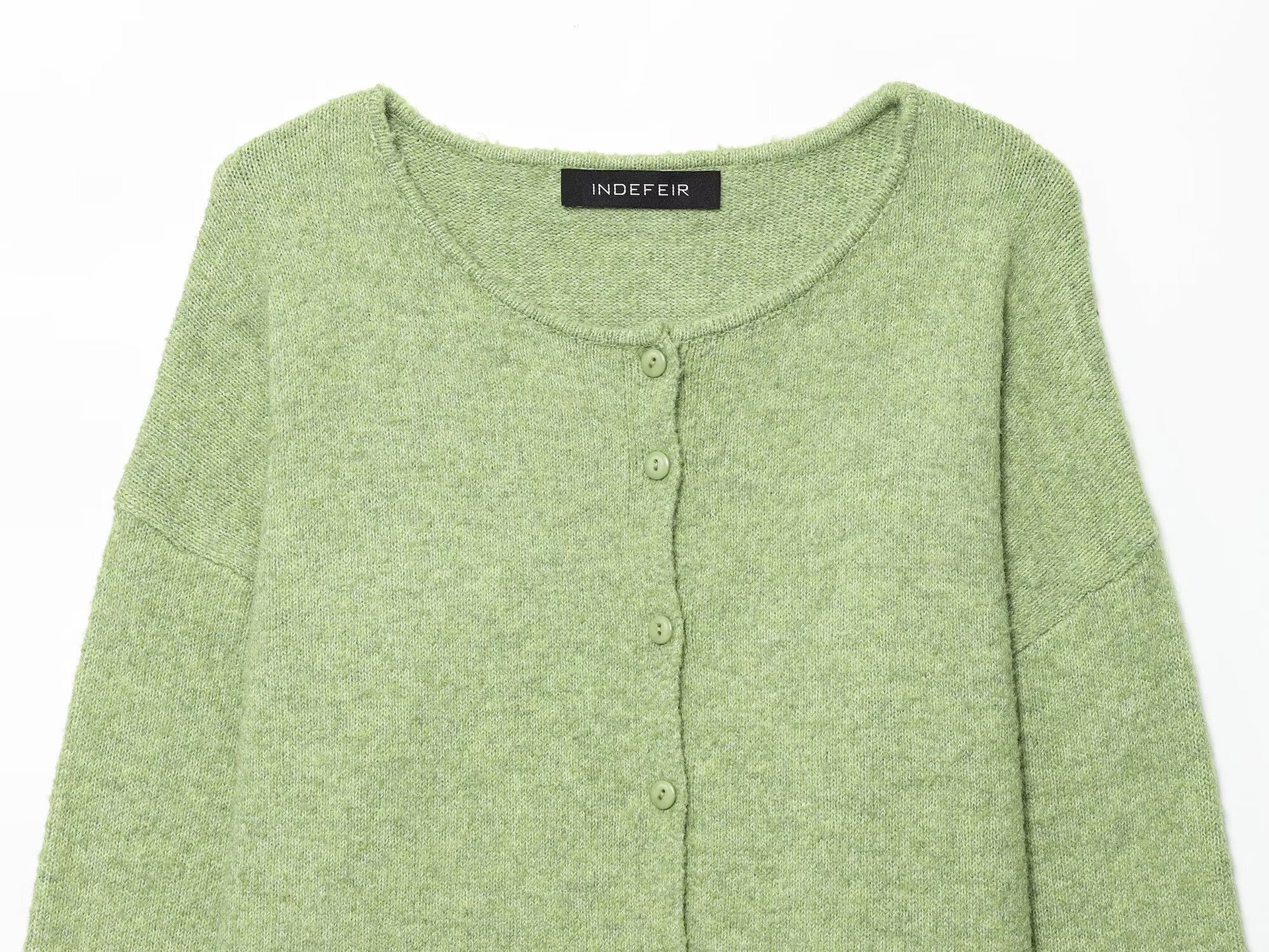 Round neck long sleeved single breasted solid color knitted sweater for women