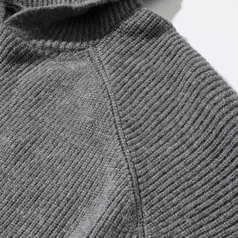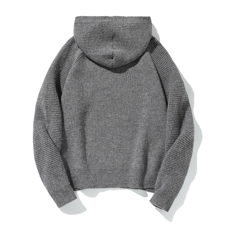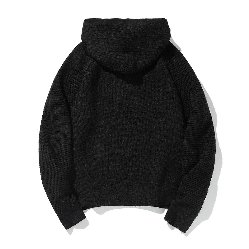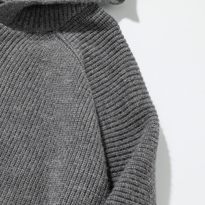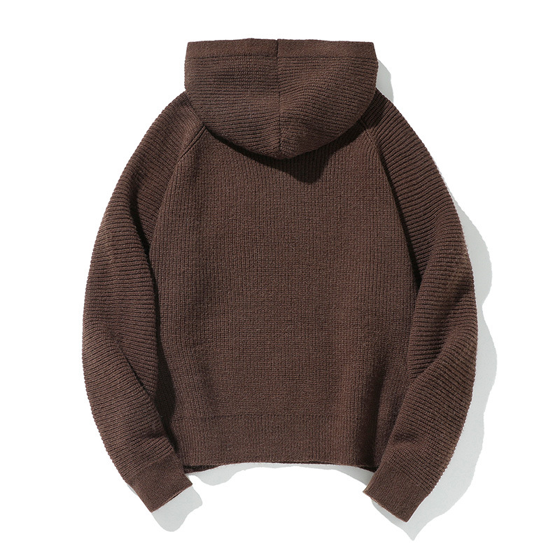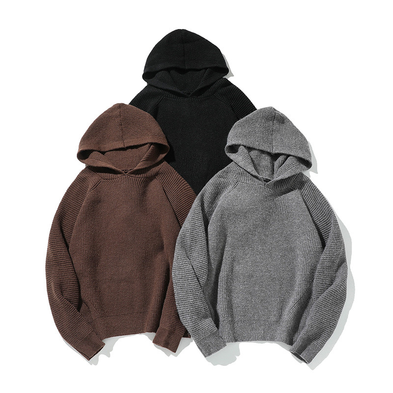 Simple Solid Color Hooded Ribbed Cuff Warm Casual Crewneck Sweater