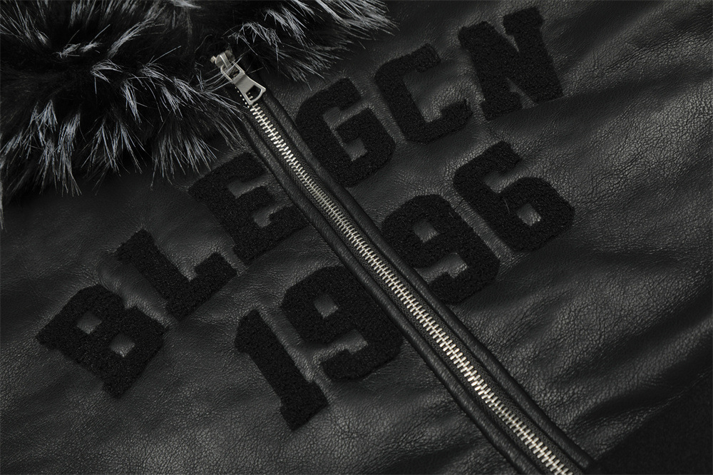 Street Style Men's Cotton Coat with Hood, Fur Collar, Letter Embroidery, Casual Loose Fit Outerwear Jacket