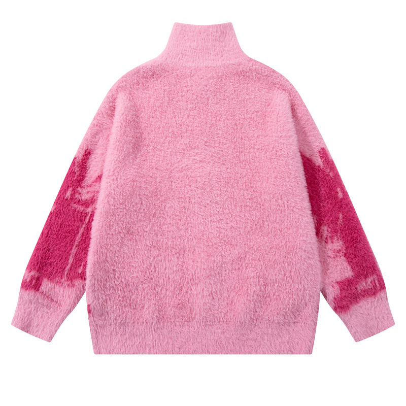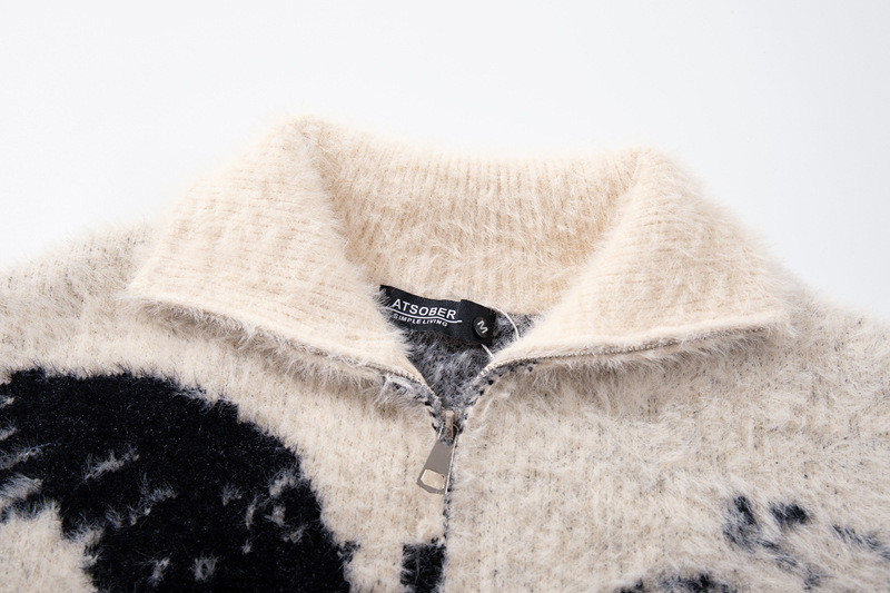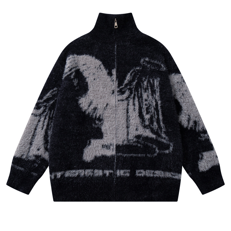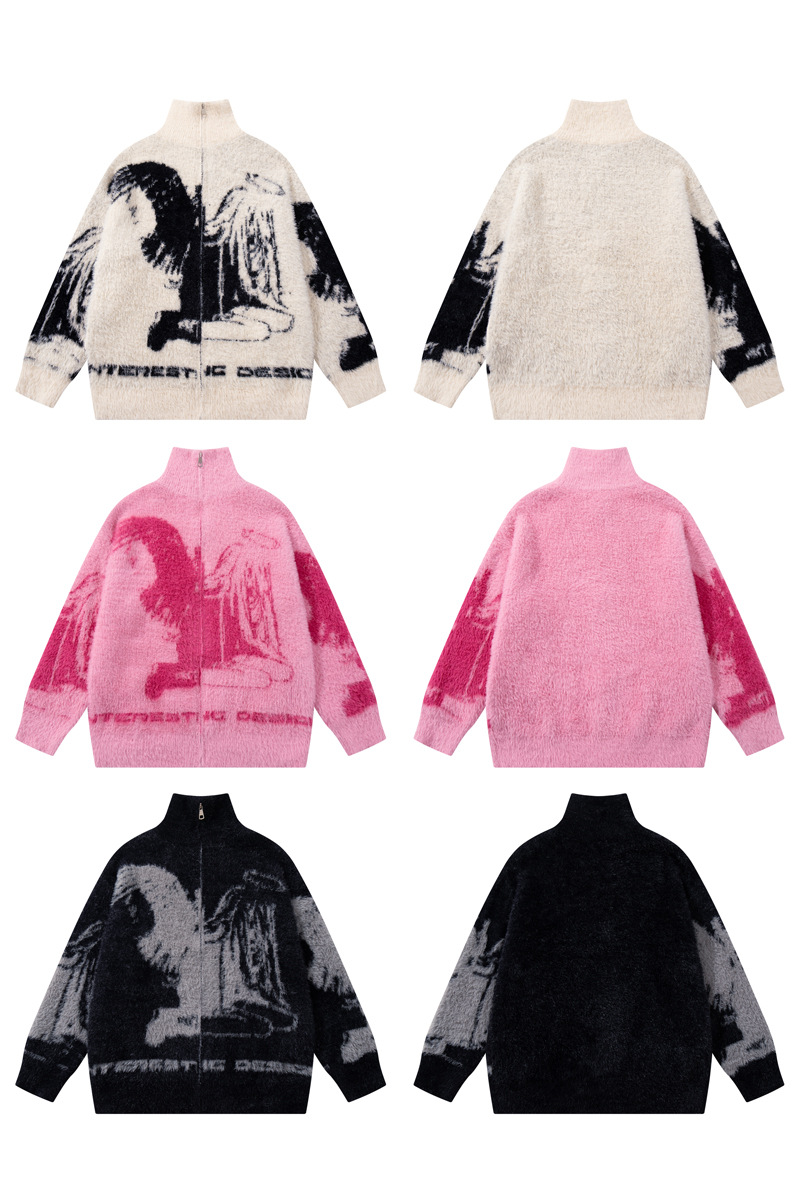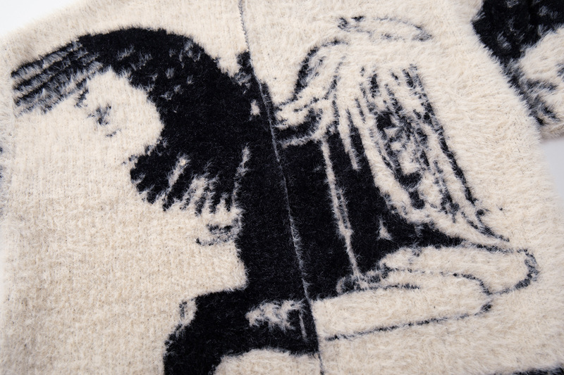 Streetwear Urban Style Angel Girl Floral Open Front Knit Sweater Loose Knit Cardigan Coat Autumn Winter Season