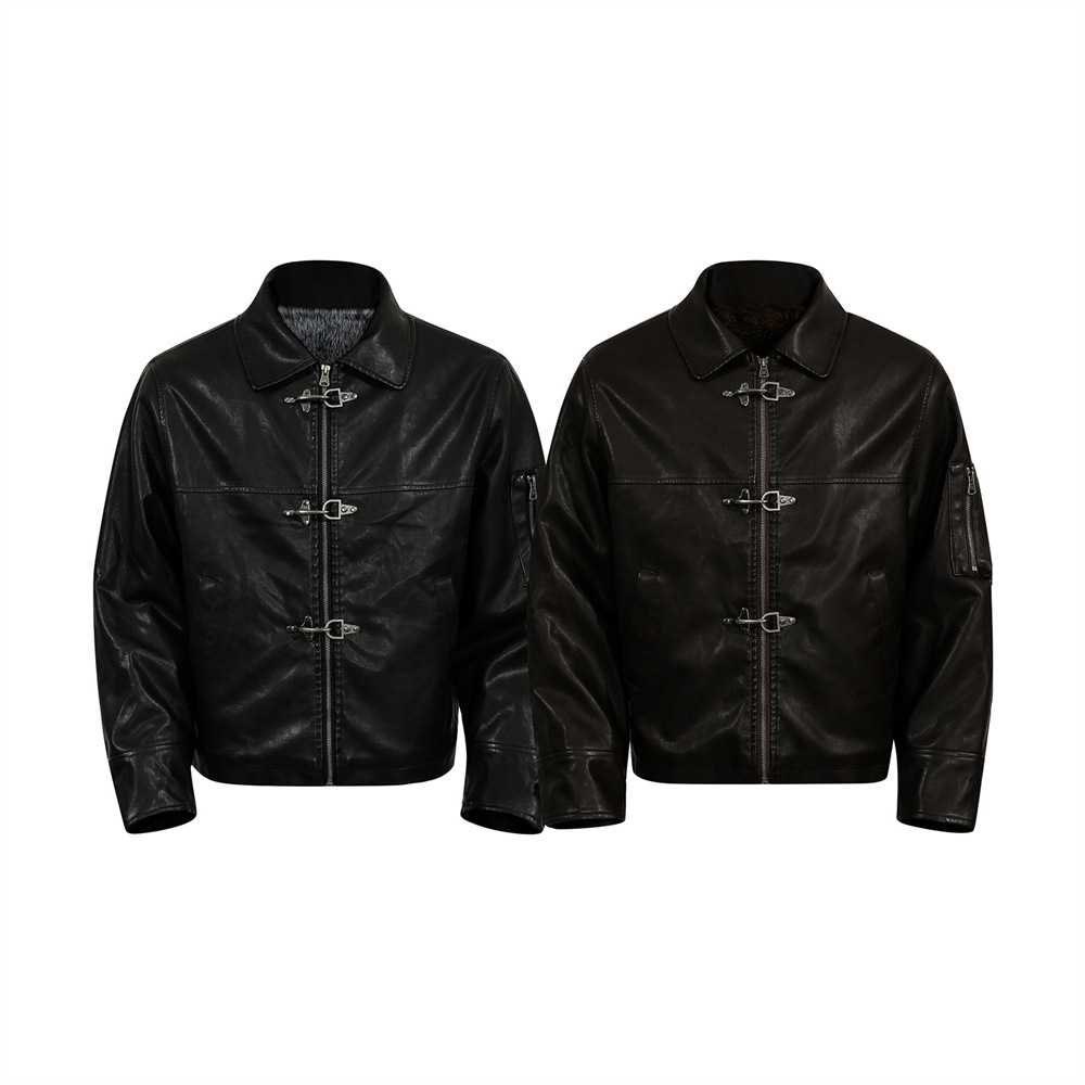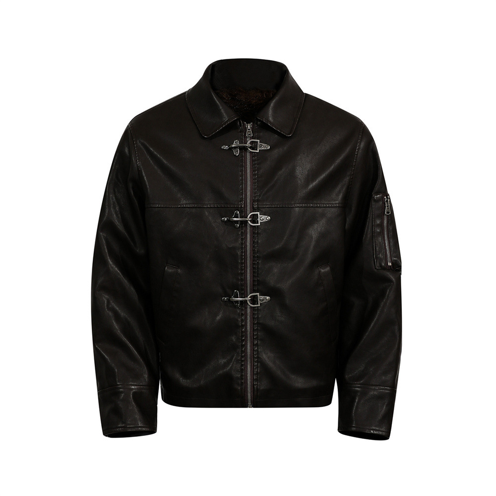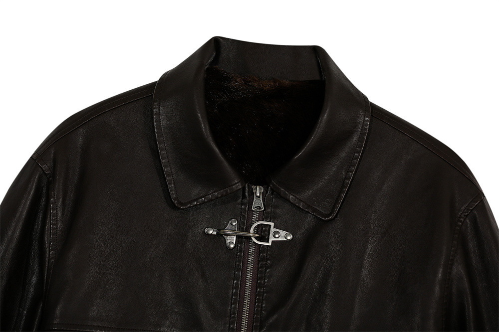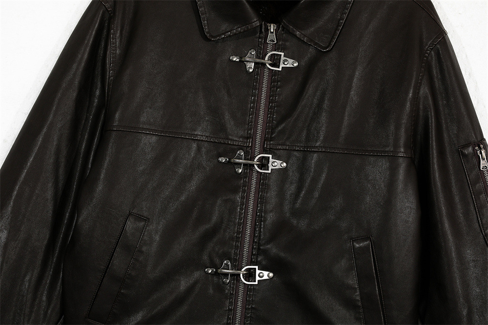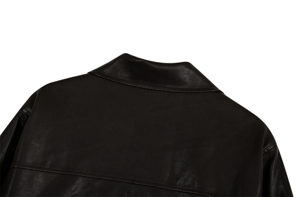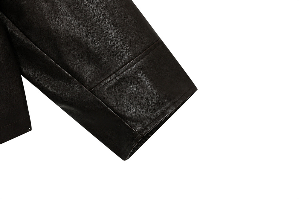 Style Men's Cotton Coat with Turn-Down Collar, PU Leather Patchwork, Loose Fit, Casual Outerwear Jacket