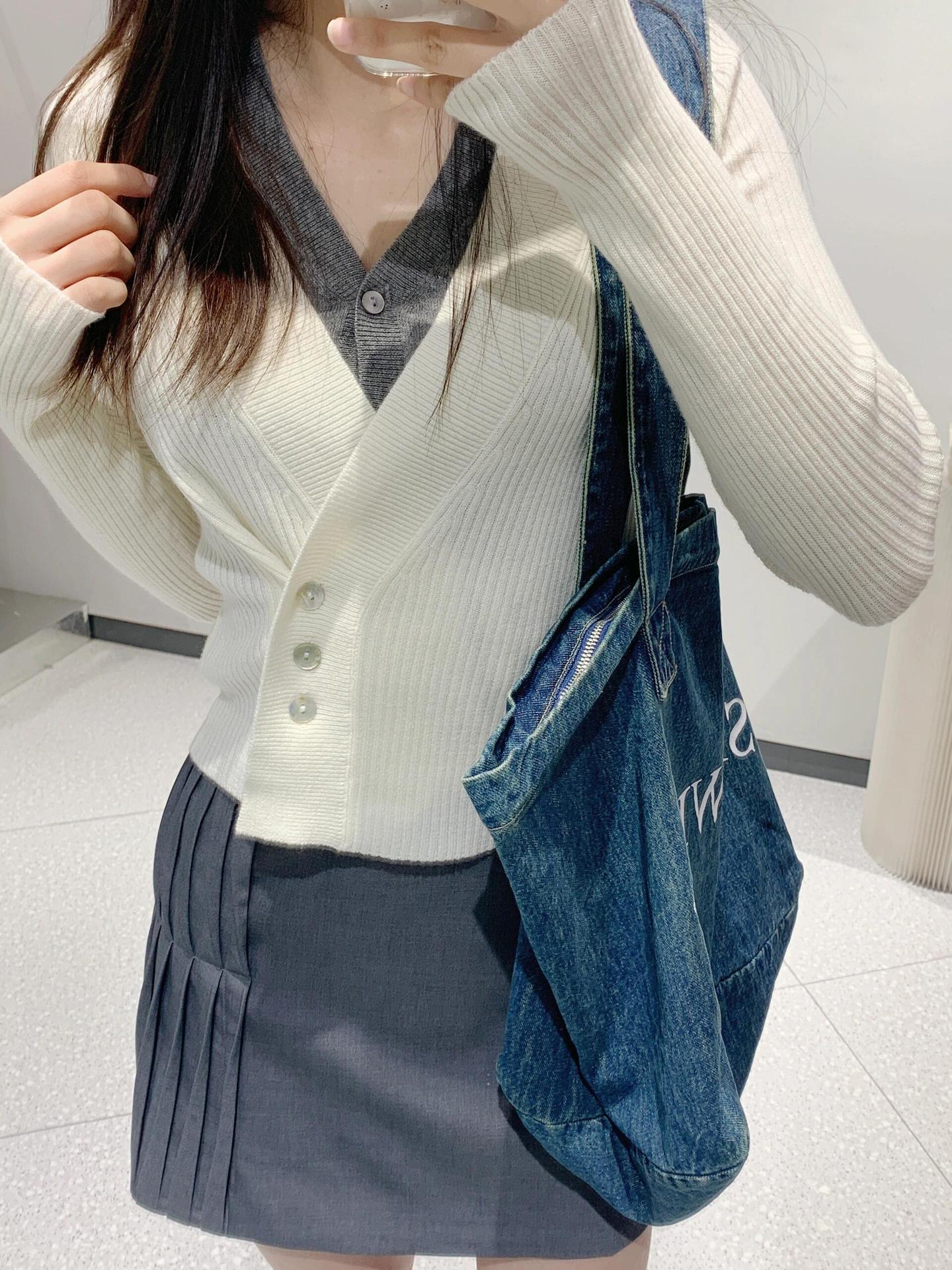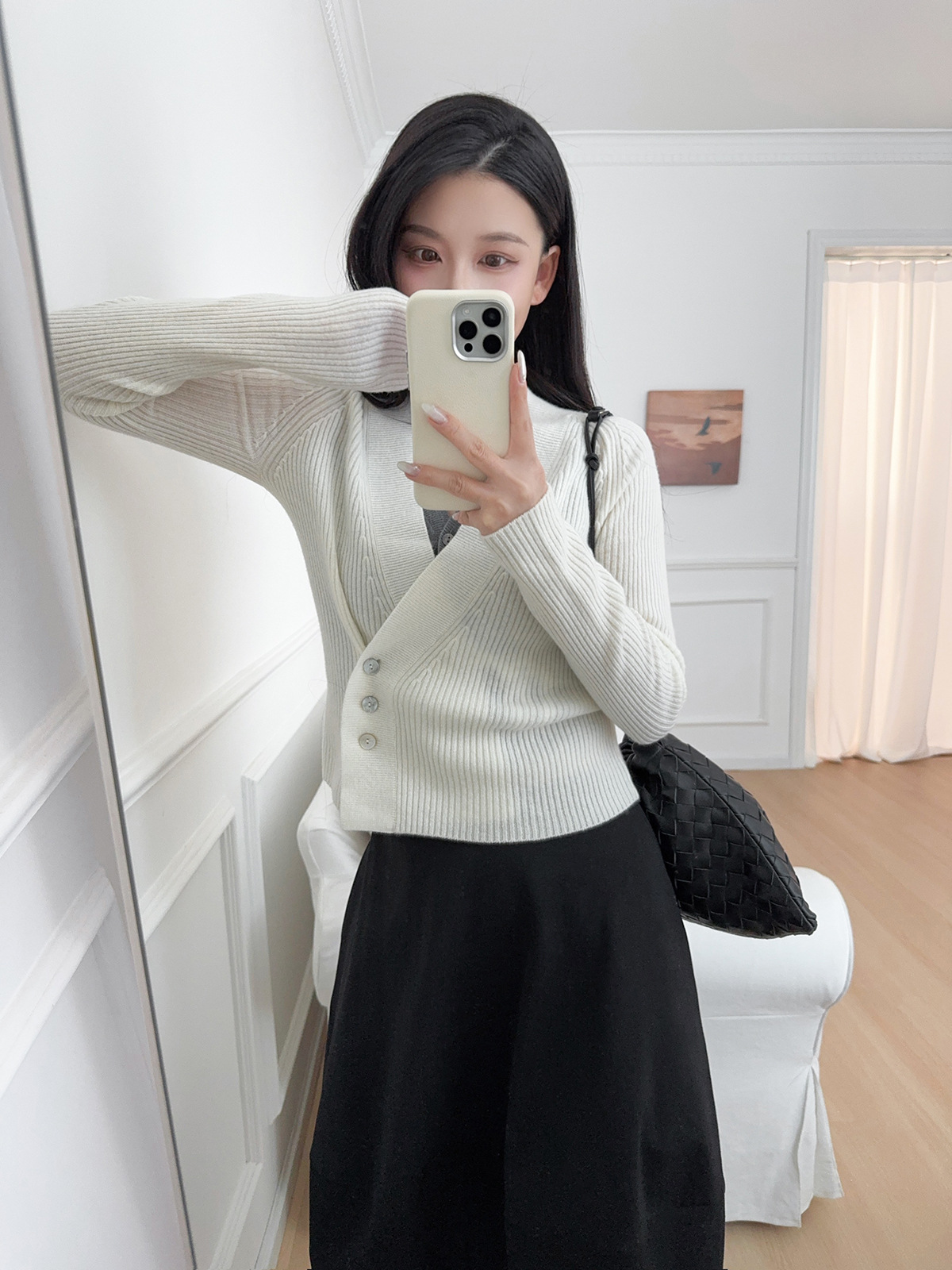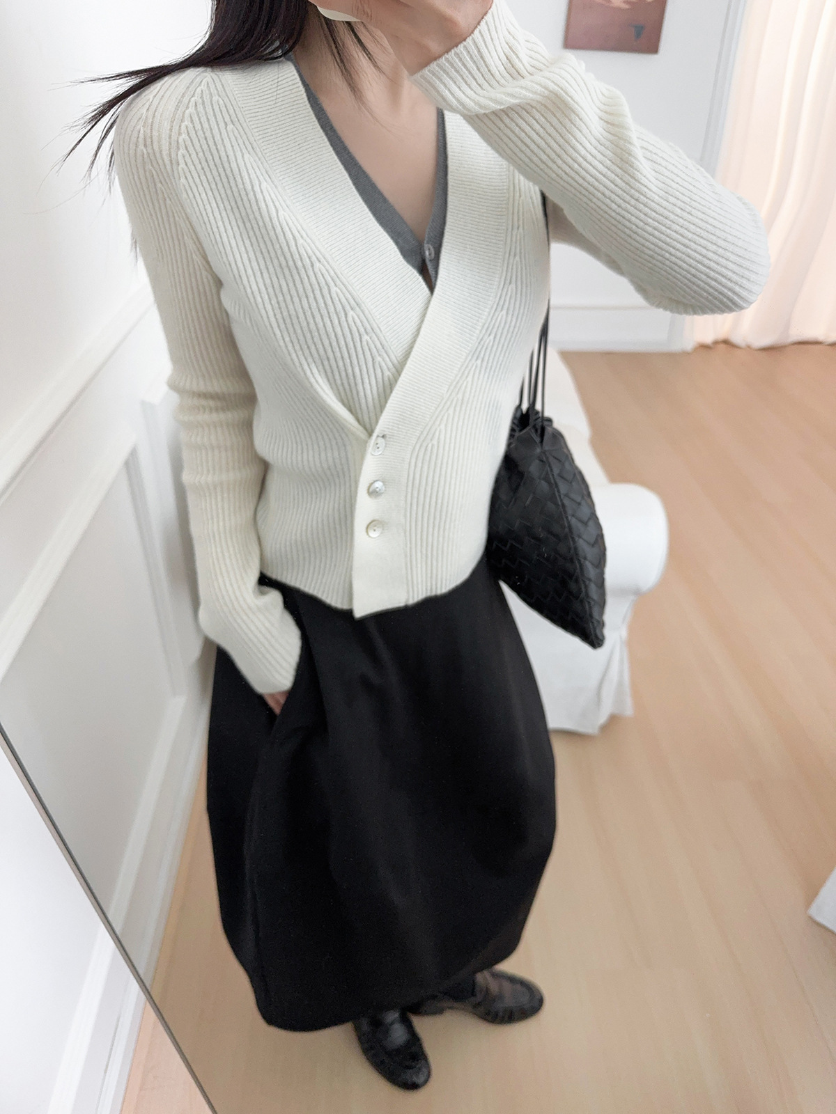 Sweater Knit Vest Set for Women, Wool Blend, V-Neck Cardigan Top