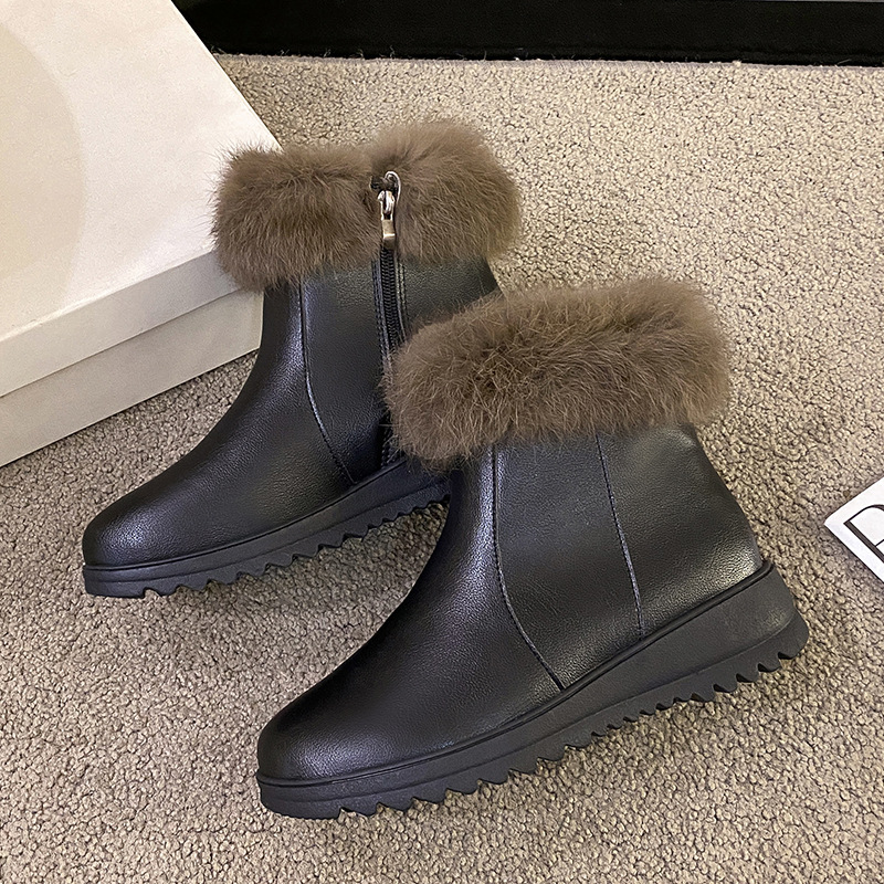 Thick and warm cotton shoes with added fleece, flat bottom and anti slip short tube bread shoes