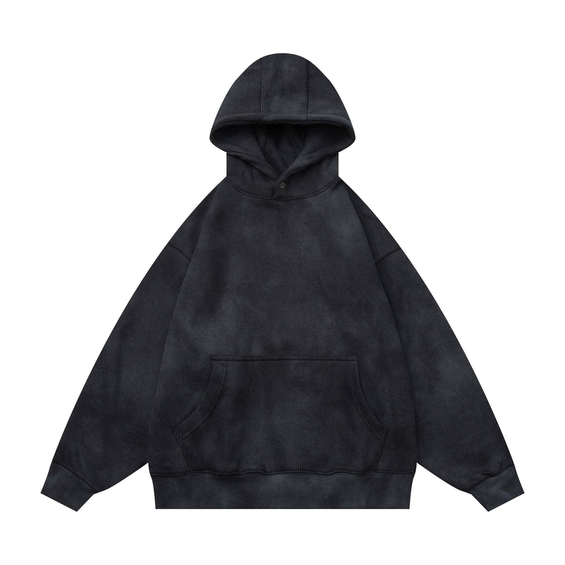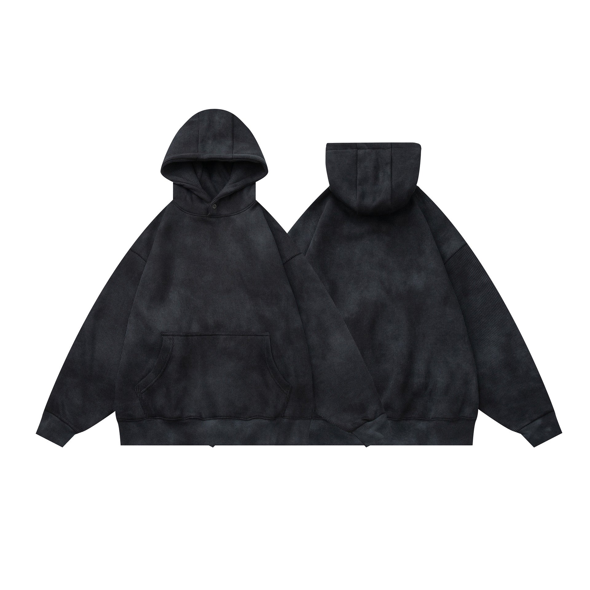 Washed Distressed Loose Fleece Hooded Pullover Sweatshirt